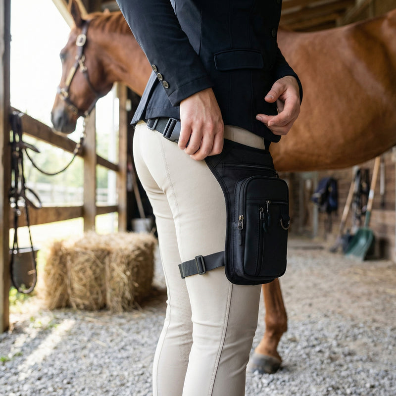 - Everything Within Reach-Keep your phone, treats, and keys accessible while mounted — right on your thigh.